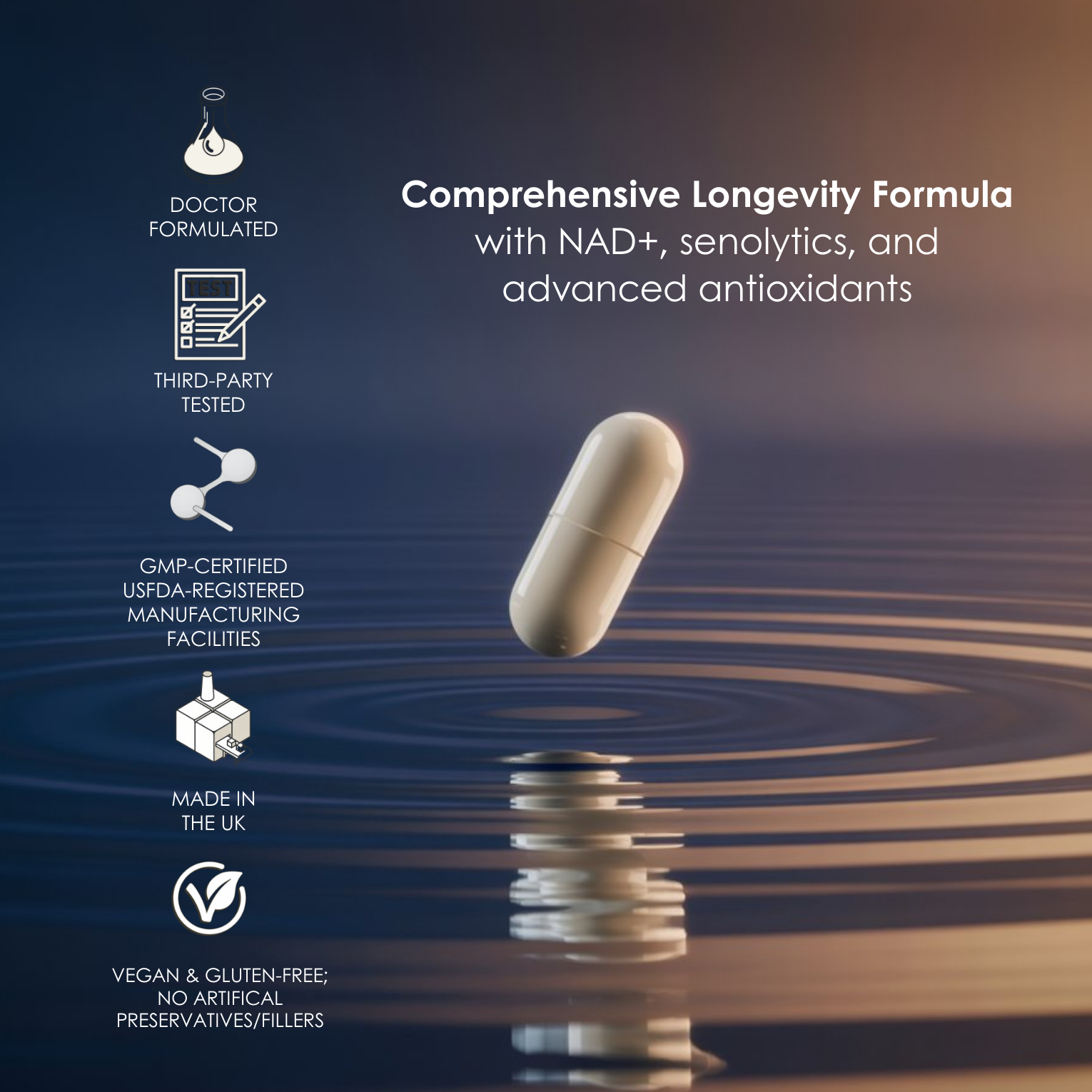 Longevita™ is designed with clinical precision, evidence-led ingredients, and complete transparency.